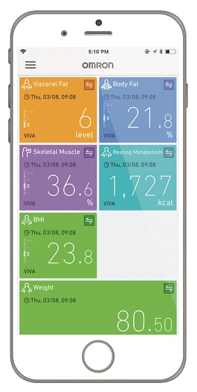 Η έξυπνη ζυγαριά-λιπομετρητής Omron VIVA αποτελεί μέρος του οικοσυστήματος "Omron connect". Συνδυάστε τη χρήση της μαζί με ένα από τα έξυπνα πιεσόμετρα, θερμόμετρα, οξύμετρα της Omron και παρακολουθήστε με ακρίβεια τις αλλαγές στο σώμα και την υγεία σας